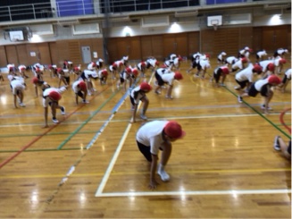 5年生は、一世風靡セピアの『前略、道の上より』を練習中です。速い音楽に合わせて覚えた振り付けを踊るのは大変そうです。体幹がないとカッコ良く踊れません。普段使わない筋肉を使っているようで「体が痛い」と言っている児童もたくさんいます。休みの日もたくさん練習練習して、カッコ良く踊ってください。