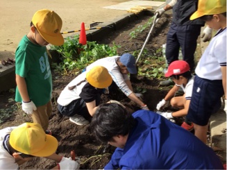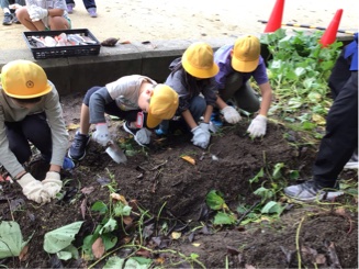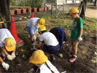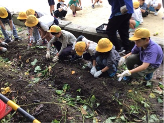 10月20日にわかば学級園でわかばのみんなが大事に育てたお芋の収穫をしました。みんな、土から出てくる虫にも驚きながら、お芋が出てくると「やったー。」と声をあげて喜びました。このお芋を使って、何を作るのか考えてクッキングも行います。みんな、楽しみにしています。