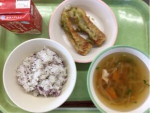 ちくわの磯辺揚げは、青さをころもに混ぜてちくわを揚げました。