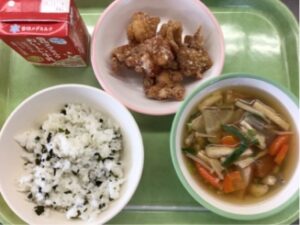 今日は、子どもたちが大、大、大好きな人気メニューの鶏肉の唐揚げと