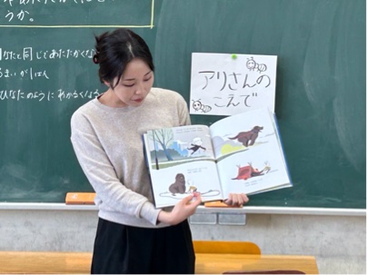 11月29日(水)の読書タイムに、担任による読み聞かせを行いました。わかば学級は、毎週担任による読み聞かせがあるので、今回は校長がしました。担任たちは、自分のおすすめの絵本から選んで子どもたちに読み聞かせをしました。どのクラスも、一生懸命聞いていました。