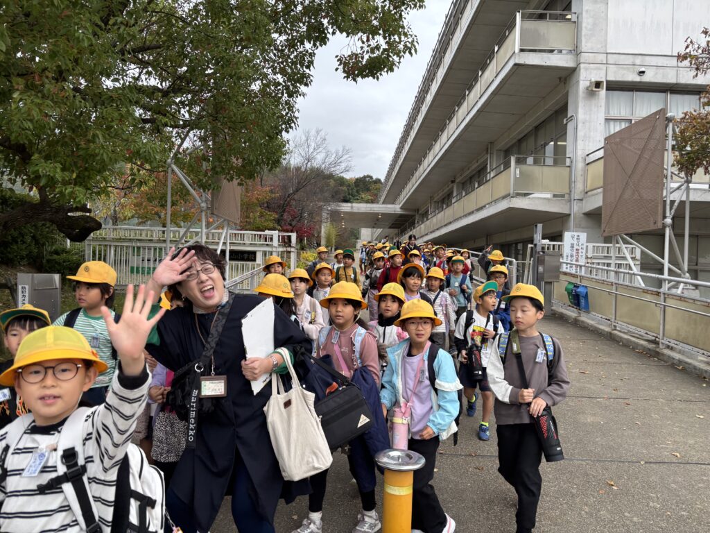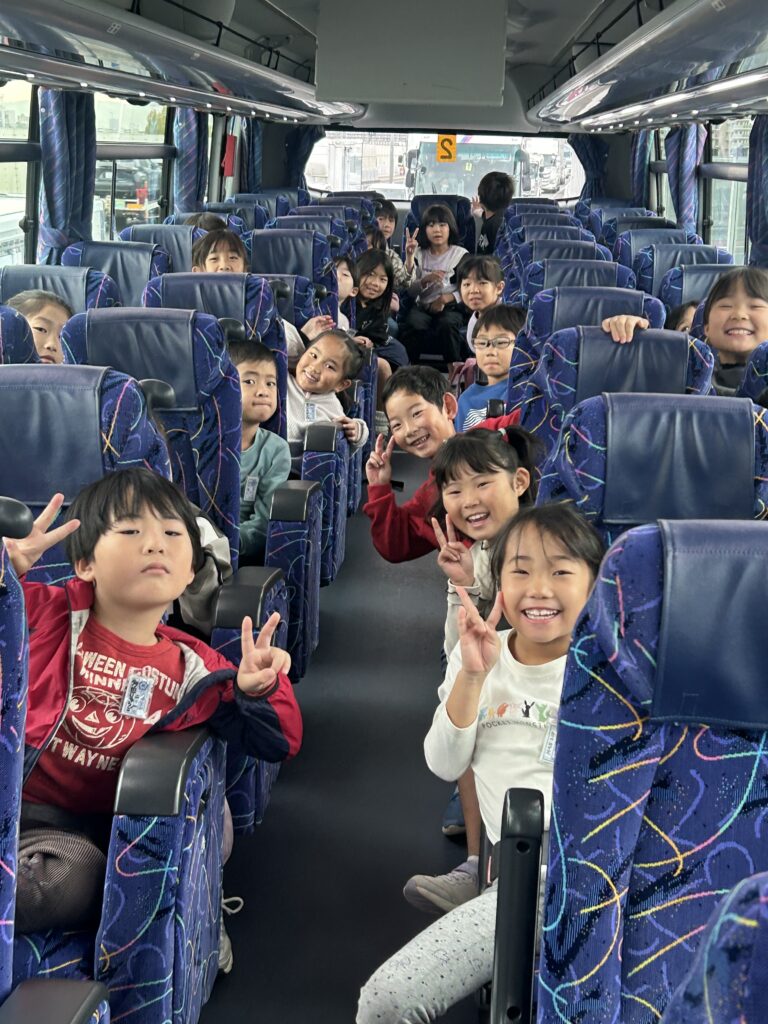 今日は2年生の校外学習です。お天気は曇りでしたが、子どもたちは元気よく出発しました。