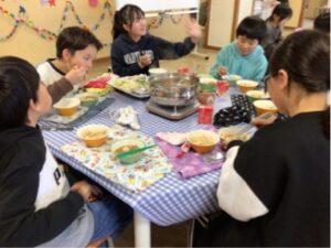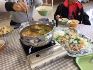 さんの具材を入れて食べました。追いキムチをしている児童もいて体が温まりました。