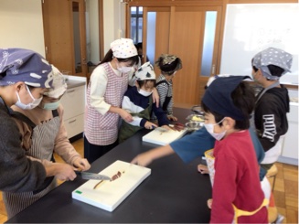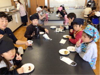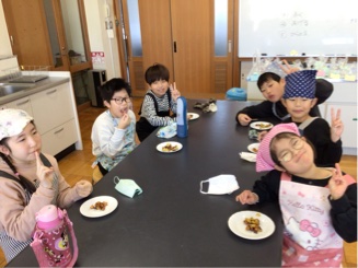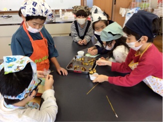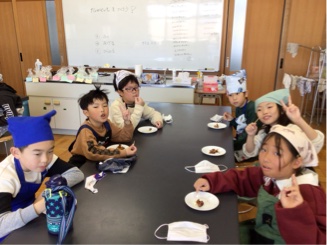 03.学校行事(学校の様子)12月16日(火)自立活動の一環として、わかば学級が育てたお芋を使って大学イモを作りました。それぞれの発達課題に合わせて、お芋を切ったり炒めたり(これは先生がほとんど手伝いました)蜜を絡めて、お世話になった先生方へメッセージをつけてプレゼントしました。みんな楽しそうに作業していました。
