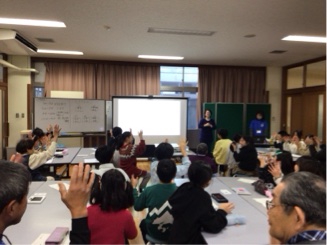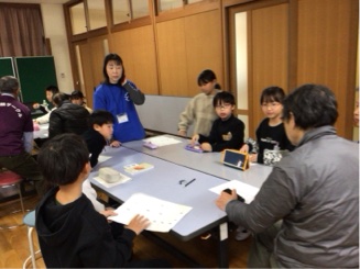 耳の聞こえない人についてのクイズをしていただいた後、子どもたちはそれまでに学校で学んだ指文字で自己紹介、来ていただいた方々に漢字の手話を教えていただいたり、カルタをジェスチャーで伝えた後その手話を教えていただくなど和やかに交流を行いました。子どもの感想の中に「初めは指文字が通じるか不安だったけど、すごく優しく受け止めてくれて嬉しかった。」と言っていました。ご協力いただいた皆様に感謝いたします。