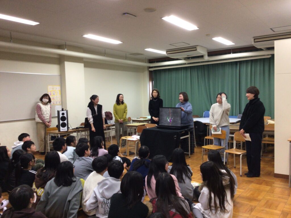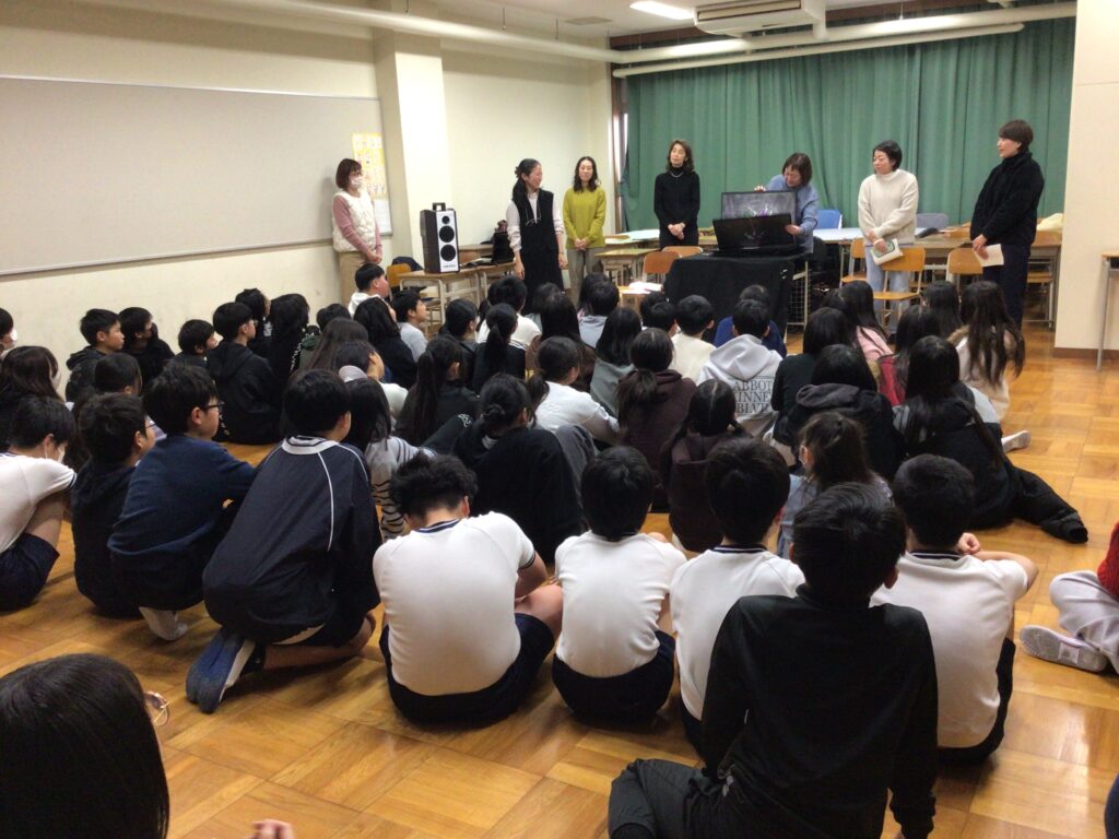 1月26日(月)の休み時間に読書ボランティアさんによる音響付き紙芝居が活動室で上演されました。。今回は6年生むきに芥川龍之介の「蜘蛛の糸」でした。真っ暗な中神秘的に光る紙芝居。プロのような役割よみ。とても見応えがありました。このほかにも、低学年や中学年向けの紙芝居もしてくださいます。6年生の良い思い出にもなりました。ボランティアの皆さん、ありがとうございました。