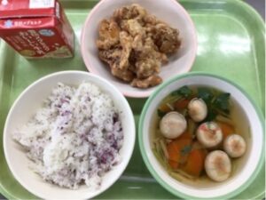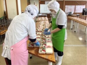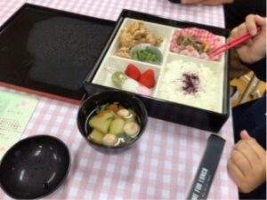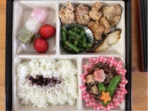 今日は、6年生の卒業お祝いの松花堂弁当でした。メニューは、ゆかりごはん、