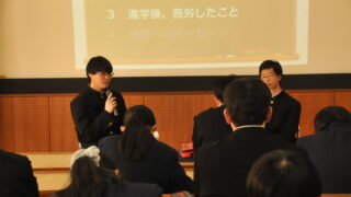 三和分校日誌 4年生と語る会 2月13日(金)、4年生の登校日に合わせて「4年生と語る会」を開催しました。この会は進路学習の一環として、4年生が進学や就職に至るまでの経験を後輩に伝える場です。当日は4年生の代表2名が、進路を決定するまでに直面した悩みや苦労、そして後... 2026.02.17 三和分校日誌未分類