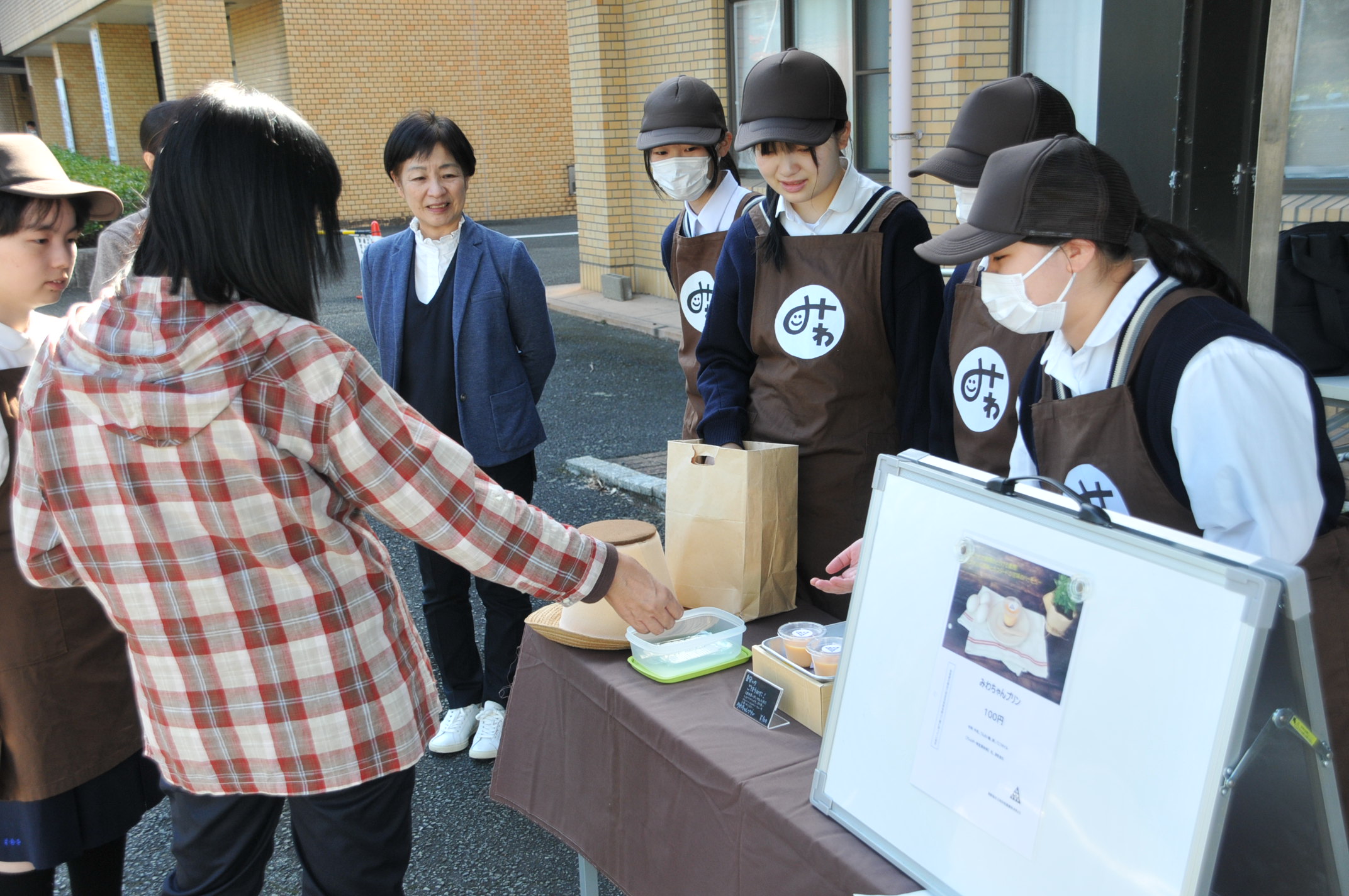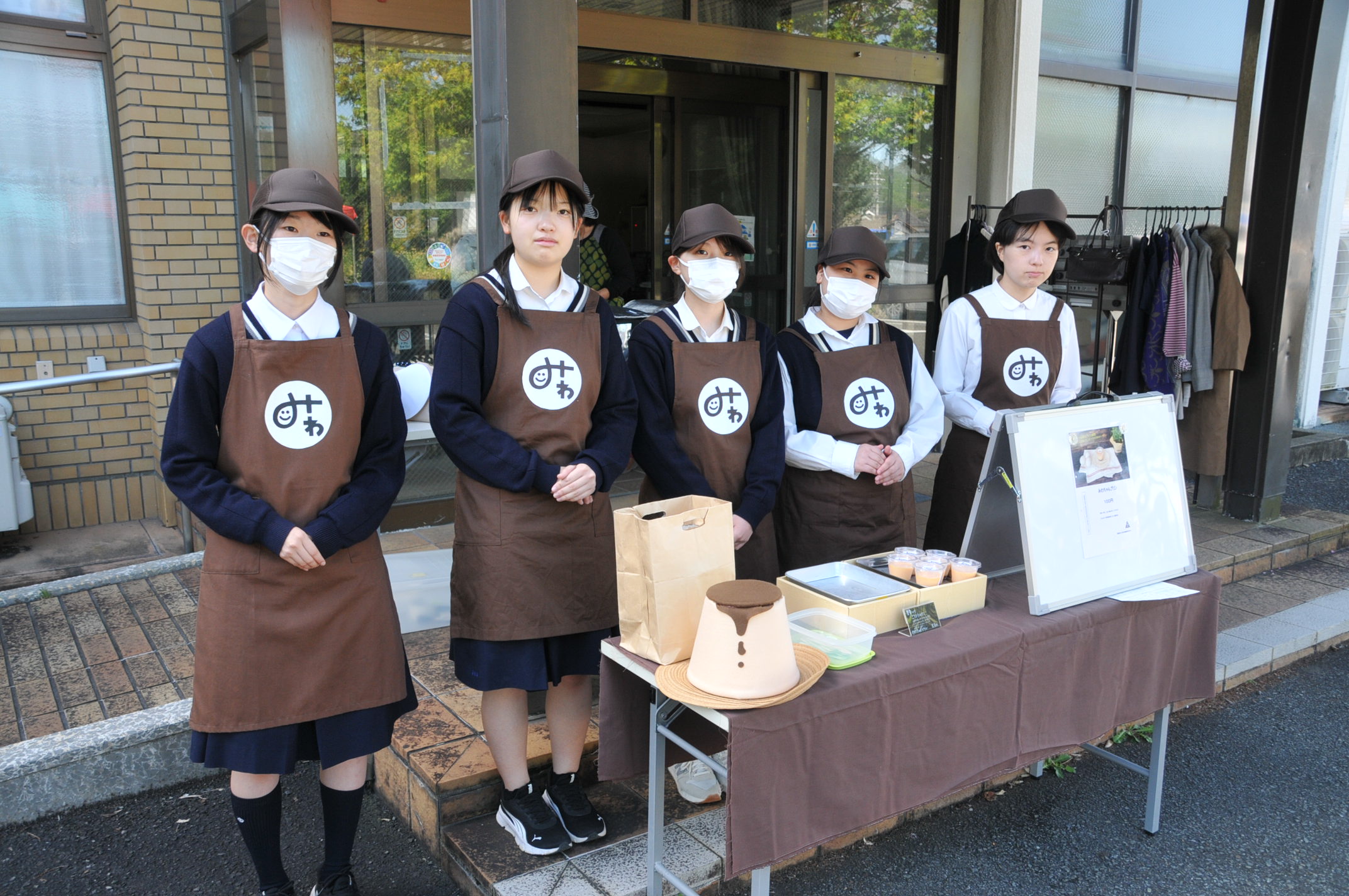 10月24日(金)、家政科の3,4年生が三和支所前で開かれた「ふれあいカフェ」で販売実習をさせていただきました。当日はみわちゃんプリン100個を準備。地元の人にたくさん買いに来ていていただき、早々に完売しました。ありがとうございました。