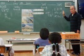 授業の冒頭で、吉田先生が子どもたちに、三和で災害に遭っ...