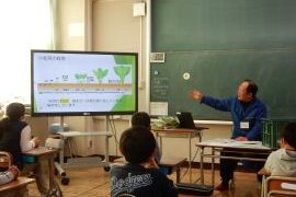 収穫前日の11月21日(金)に、「マメな中西農園」の中西代表、中丹東農業改良普及センターの儀間技師、中丹西農業改良普及センターの則信技師にご来校いただき、25日(火)の小松菜収穫に向けた事前学習を行いました。