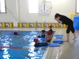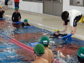 11月17日(月)に、3回目の水泳学習を行いました。どの学年もバタ足をがんばり、3~6年は、ビート板を使って、クロールにつながる動きの練習を繰り返し行いました。また、3・4年では、仰向けの姿勢で水に浮かぶ練習を行いました。
