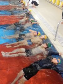 三和学園ニュース11月17日(月)に、3回目の水泳学習を行いました。どの学年もバタ足をがんばり、3~6年は、ビート板を使って、クロールにつながる動きの練習を繰り返し行いました。また、3・4年では、仰向けの姿勢で水に浮かぶ練習を行いました。