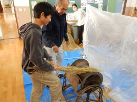 脱穀した米は、12月2日(火)に地域に方のお力を借りながら籾摺りを行います。