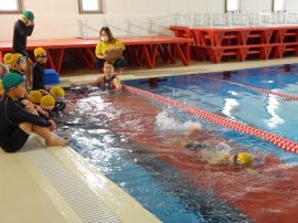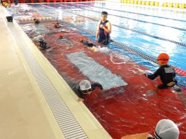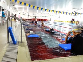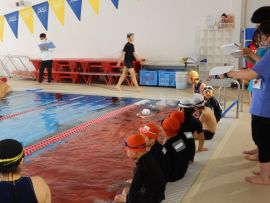 今回は、最終回ということで、泳力がどれくらい伸びたかを測定しました。ほとんどの児童が初回より伸びていました。毎回の授業で、しっかり練習を重ねてきた成果と言えます。