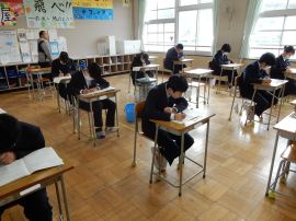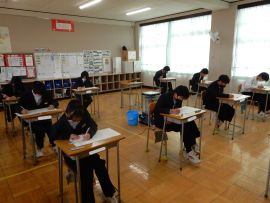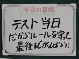 三和学園ニュース12月3日(水)・4日(木)・5日(金)の3日間は、7~9年の2学期期末テストです。生徒たちは、これまでの学習の成果を発揮しようと、真剣にテストに向かっていました。「テスト当日だからルールを守って最後までがんばろう!」という目標を掲げているクラスがありました。