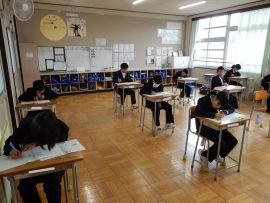 12月3日(水)・4日(木)・5日(金)の3日間は、7~9年の2学期期末テストです。生徒たちは、これまでの学習の成果を発揮しようと、真剣にテストに向かっていました。「テスト当日だからルールを守って最後までがんばろう!」という目標を掲げているクラスがありました。