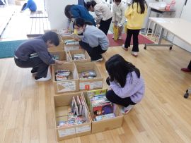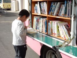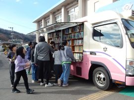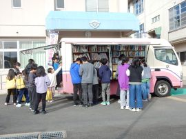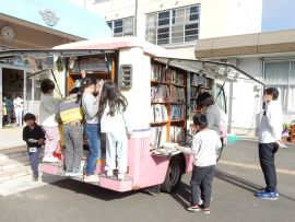 12月11日(木)の朝は、ぶっくぶくの皆様による読み聞かせスペシャルでどっぷり本の世界に浸りました。そして、同日中間休みに、ナイス・タイミングで移動図書館「さつき号」が来てくれました。一人5冊まで借りられるので、子どもたちは、興味の湧いた本をいそいそと選んでいました。