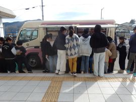 三和学園ニュース12月11日(木)の朝は、ぶっくぶくの皆様による読み聞かせスペシャルでどっぷり本の世界に浸りました。そして、同日中間休みに、ナイス・タイミングで移動図書館「さつき号」が来てくれました。一人5冊まで借りられるので、子どもたちは、興味の湧いた本をいそいそと選んでいました。