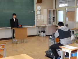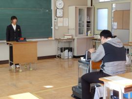 12月16日(火)の放課後、令和8年の生徒会役員候補者による立会演説会リハーサルを行いました。7・8年教室に分かれ、自分の主張が伝わるように、声の大きさや読むスピード、視線などを意識しながら、各自が作った原稿を録画用のタブレット型端末に向かって読み上げました。タブレット型端末に録画した理由は、福知山市内で依然インフルエンザ等の感染症が流行しており、今後三和学園で流行した場合に備えての措置のためでした。