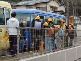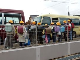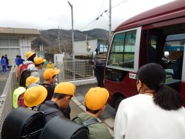 12月24日(水)の下校前に、スクールバスの運転手さんに、バスごとにお礼の言葉を伝えました。登下校のみならず、三和創造学習で町内各所に赴く時や、水泳学習で福知山スイミングスクールへ行く時にも大変お世話になりました。