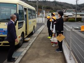 三和学園ニュース12月24日(水)の下校前に、スクールバスの運転手さんに、バスごとにお礼の言葉を伝えました。登下校のみならず、三和創造学習で町内各所に赴く時や、水泳学習で福知山スイミングスクールへ行く時にも大変お世話になりました。