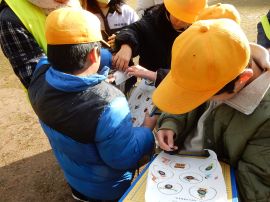 1月9日(金)に、青空学級1・2組の児童が生活単元学習の一環で、冬見つけを行いました。ちょうど前日に降った雪がそこかしこに残っていて、冬を探すには持って来いの日でした。歩いて千束の井ノ奥公園へ行き、年の初めということで大歳神社で初詣を行いました。屋根の雪に風情を感じました。