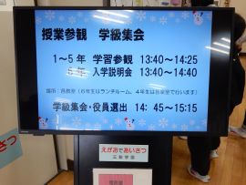 1月15日(木)に、1~5年の授業参観、6年の入学説明会を実施するとともに、次年度PTA役員決めをお世話になりました。