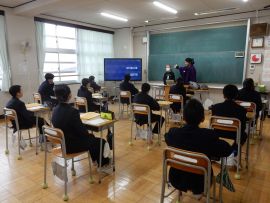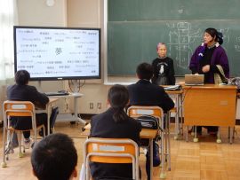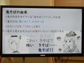 1月20日(火)に、7年生が大江山鬼そば屋の共同店主、佐々井様と中村様にお越しいただき、キャリア学習を行いました。社会に出たときに必要な知識や心構えなどを学ぶとともに、そば打ち体験をするというのが、今回の目標でした。