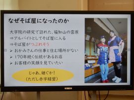 佐々井さんには、たくさんの夢がありました。トラック運転手、野球選手、プロレスラー、家政学者、ファッションモデル、自衛官、小説家などなど…。その中にそば屋という選択肢は、ありませんでした。では、なぜ今そば屋を営んでいるのでしょう?それは、大学院の研究の一環で大江鬼そば屋と出会い、アルバイトをするうちに、経営難にあると知ったことがきっかけでした。「170年続くこの店をこのまま閉じさせてよいものか…。」「中村さんが仕事はおろか住む所も失う。」「『また来年に来るよ。』と言っていたお客さんの『来年』はどうなる。」いろいろなことが頭をよぎりました。そして、「後継者がいない?」「じゃあ、継ぐか!」となったそうです。