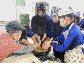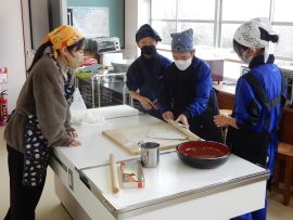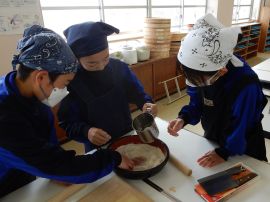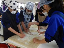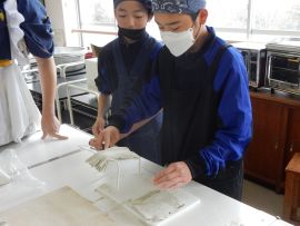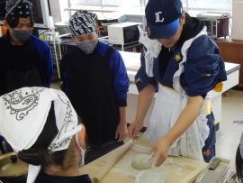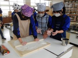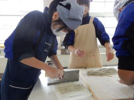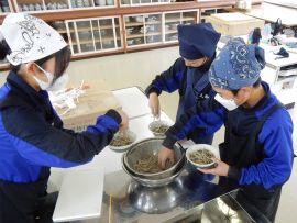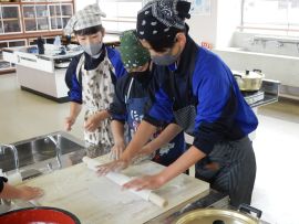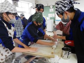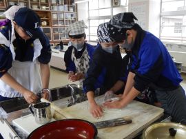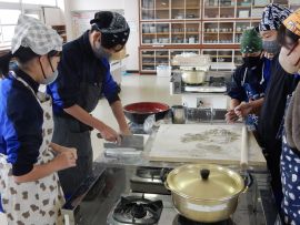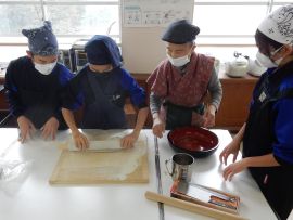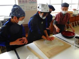 1月20日(火)に、大江山鬼そば屋の共同店主、佐々井様、中村様にお世話になった7年キャリア学習。講話に引き続いて、そば打ちを体験させていただきました。