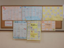各学年で分担し、学校給食に携わってくださっている方々へメッセージカードを書きました。23日(金)からしばらくの間、三和学園の昇降口に掲示しています。