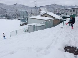休校開けの1月23日(金)、週明けの26日(月)・27日(火)と、三和学園のグラウンドには、たくさんの雪が積もっていました。