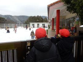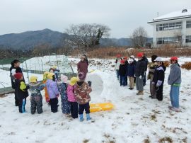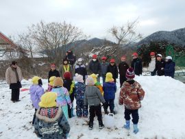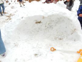 当初、室内遊びを計画していたのですが、大雪の後なので、予定を変更。園児たちと向かった先には…。大きなかまくらが!でもまだ未完成のようです。