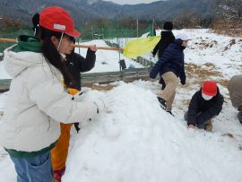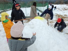 楽しい時間は、あっという間に過ぎていき、タイム・アップ!残念ながら完成には至りませんでしたが、より大きく、よりかまくららしくすることができました。