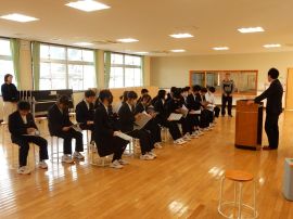 生徒の代表は、「毎日やっていることに色味を付けて一生懸命頑張っていかないといけないと思いました。」という感想を述べていました。