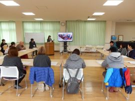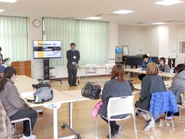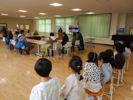 保護者の皆様による参観はここまでで、ランチルームへ戻って入学説明会を行いました。学園の概要から子どもたちの健康について、持ち物やバス通学などについてお話ししました。