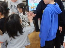 帰り際には、「バイバイ。」と手を振ってくれたり、互いにハイタッチをしてくれたりした園児の皆さんでした。元気な園児たちとのふれ合いの計画を立て、準備を整えて会を運営した1年生と5年生。とてもすばらしかったです!