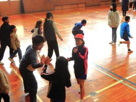 どの班も、一際大きな声を出していました。縄に入るベストのタイミングで、苦手な児童の背中を押す高学年児童や、上手く跳べた児童とハイタッチをして喜び合う姿など、正に「これまでの練習の成果を発揮する場面」が見られました。