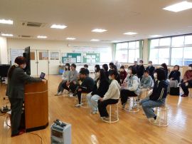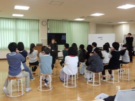 「覚えることや思い出すことが難しいから繰り返して聞いてしまうことが認知症だと知って、優しく声をかけることがとても大切だということが分かった。また、認知症予防のために手を使った運動を体験して、迷うものや難しいものがたくさんあったので、家でもまたやってみたいと思った。」