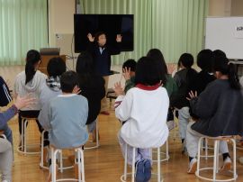 2月12日(木)に、6年生が家庭科「共に生きる地域での生活」の学習の一環で、特別養護老人ホームみわの里の職員の皆様に講師をお世話になり、認知症サポーター養成講座を受講しました。今年度で2回目の試みで、「①認知症についての正しい知識を身に付けさせるとともに、認知症ケアやコミュニケーション技術等についての理解を深められるようにする。/②高齢社会の現状と課題について認識し、社会(地域)づくりの主体者としての意識を高める。」という目標をもって実施しました。認知症家族の会の小林代表が参観されました。