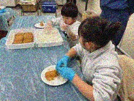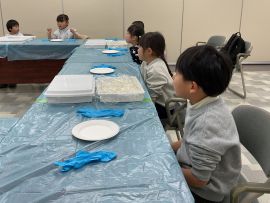 完成した寿司は、その場で頂いたり、持って帰って食べたりしました。分厚く甘い油揚げで包まれた稲荷寿司に、子どもたちは、「美味しかった。」「もっと食べたかった。」と、うれしそうにしていました。