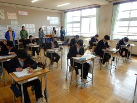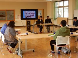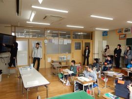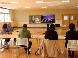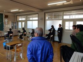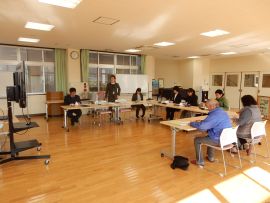 授業参観に続いて、三和学園と三和こども園から、学習の様子や子どもたちの様子を伝えました。三和学園からは、文化祭以降の行事や部活動の様子をスライド・ショーで振り返った後、生徒指導や進路・キャリア教育、「三和学園の教育活動についてのアンケート」「児童生徒アンケート」の結果について報告しました。三和こども園からは、「三和こども園評価アンケート」結果報告や、三和学園児童生徒と園児との交流の様子、雪遊びでの子どもたちの気付きなどについて報告しました。