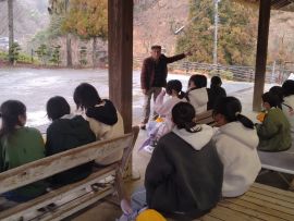 学習のコースは、①大原神社絵馬殿→②リバース647かわい承学校「ちっちゃな平和ミュージアム」→③廣雲寺→④ケイ石採掘場跡→⑤郡是萩原分工場跡でした。