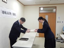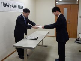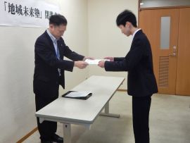 受講者は、「できなかったことが、ここでできるようになり、入試でもスラスラ解けました。」「楽しく学習を進めることができました。」「英語が苦手だったけど、できるようになりました。もっと賢くなりたいと思います。」「自分が得意だと思っていたことでも漏れているところが分かりました。」と、地域未来塾で重点的に取り組んだ学習内容や、できるようになったこと、支援員の皆様から頂いたアドバイスなどを語り、最後にお礼を述べました。