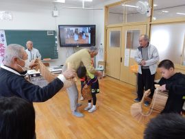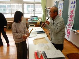 あっという間に体験の時間が終わりました。最後に細見さんが、「10月の宵宮には、是非見に来てください。」と言われました。三和町の伝統文化を知り、それを伝えていこうとされる皆様の思いを学ぶことができました。細見様、辻様、西村様、吉田様ありがとうございました。