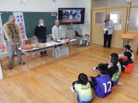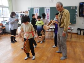 3月2日(月)に、4年生が三和創造学習の一環で、大身の廣谷神社で五穀豊穣の願いを込めて踊る「ヤンゴ踊り」について学びました。講師は、ヤンゴ踊り保存会の細見様、辻様、西村様の3名と、吉田地域講師でした。