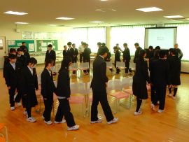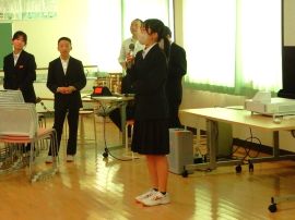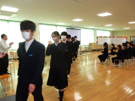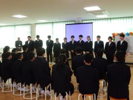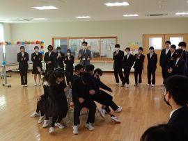 生徒会議長の「三和学園での思い出を大切にし、新しい環境でがんばってください。」というあいさつにより、会はフィナーレを迎え、9年生が拍手の中退場して幕を閉じました。