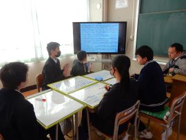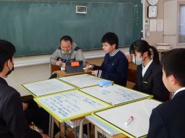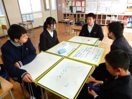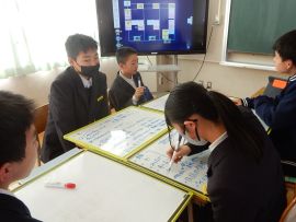 3月17日(火)の放課後に、生徒会本部役員が、令和8年度の児童会・生徒会スローガンを決めるための会議を行いました。令和7年度の「前進 ~ふみだそう みんなで~」に匹敵するようなスローガンを決めたいところですが、いざ考えるとなると、難航しました。自分たちがやりたいことを短い言葉で端的に伝えるって、難しい!「それは、○○年の時と一緒や。」「『前進』に引っ張られ過ぎや。」などなど、激論を交わしながら考えましたが、残念ながらこの日は、タイム・アップ。