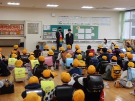 3月18日(水)の下校の会にて、8年生が小学生に、千羽鶴完成の報告と協力のお礼を言いに来てくれました。この千羽鶴は、8年生が3学期の朝の会に、小学部各学年に依頼し、折り方を教えながら一緒に折った鶴を集めたものです。三和学園の全児童生徒の手による千羽鶴なのです。
